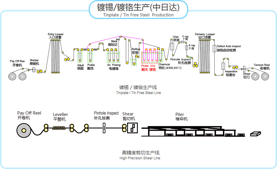 設備工藝 生產(chǎn)流程 生產(chǎn)設備 核心工藝 產(chǎn)品介紹 馬口鐵/鍍鉻鐵 應用介紹 規格參數 可制造范圍 |
